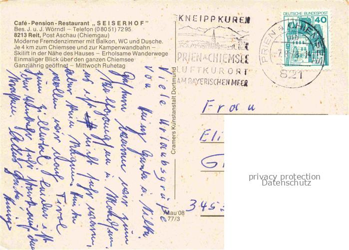 74090958 alte Postkarte Reit Aschau Chiemgau Cafe Restaurant Seiserhof Panorama Gastraeume postalisch gelaufen Erhaltung siehe scans [WerneD78] KatCode: 11110009183113