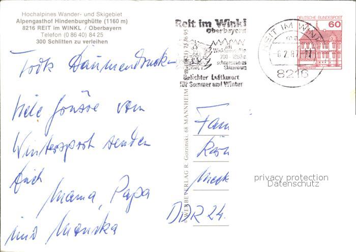 alte Postkarte Reit Winkl Alpengasthof Hindenburghuette postalisch gelaufen Erhaltung siehe scans
