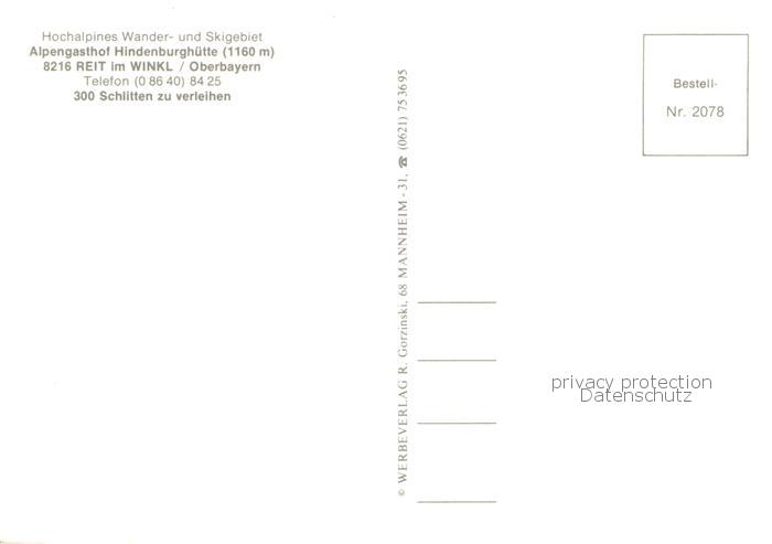 73838279 Reit Winkl Alpengasthof Hindenburghuette postalisch nicht gelaufen Erhaltung siehe scans [WerneD78] KatCode: 11110009189139