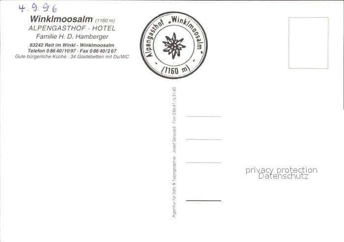 72257691 Reit Winkl Alpengasthof Hotel Winklmoosalm postalisch nicht gelaufen Erhaltung siehe scans KatCode: 11110009189139