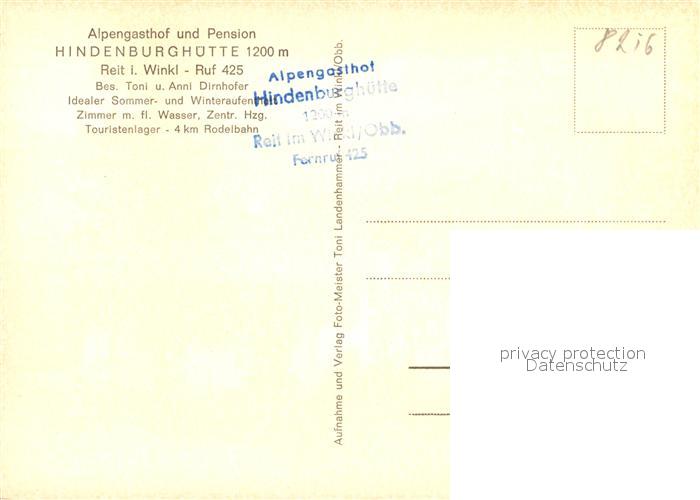 73024557 Reit Winkl Alpengasthof Pension Hindenburghuette postalisch nicht gelaufen Erhaltung siehe scans [KathaD81] KatCode: 11110009189139
