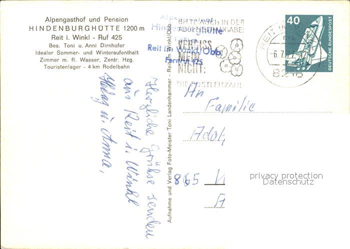 72064871 alte Postkarte Reit Winkl Alpengasthof Pension Hindenburghuette Alpenpanorama postalisch gelaufen Erhaltung siehe scans KatCode: 11110009189139
