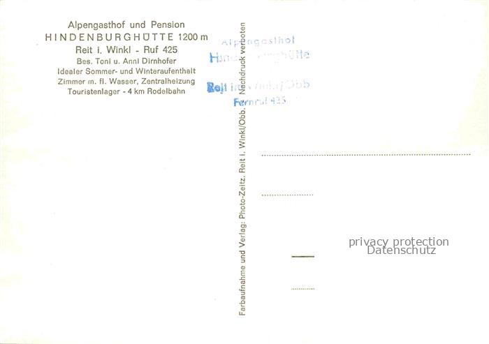 74024731 Reit Winkl Alpengasthof Pension Hindenburghuette Winterpanorama Alpen postalisch nicht gelaufen Erhaltung siehe scans [FriedD77] KatCode: 11110009189139