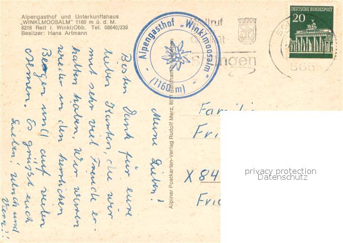 73746425 alte Postkarte Reit Winkl Alpengasthof und Unterkunftshaus Winkmoosalm Kapellchen postalisch gelaufen Erhaltung siehe scans [WerneD78] KatCode: 11110009189139