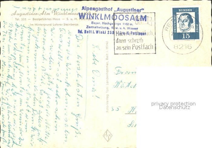 71899275 alte Postkarte Reit Winkl Augustiner Alm Winkelmoos Loferer Steinberge Sommerpanorama postalisch gelaufen Erhaltung siehe scans KatCode: 11110009189139