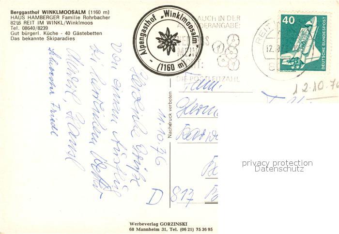 73071440 alte Postkarte Reit Winkl Berggasthof Winklmoosalm postalisch gelaufen Erhaltung siehe scans [NatalD47] KatCode: 11110009189139
