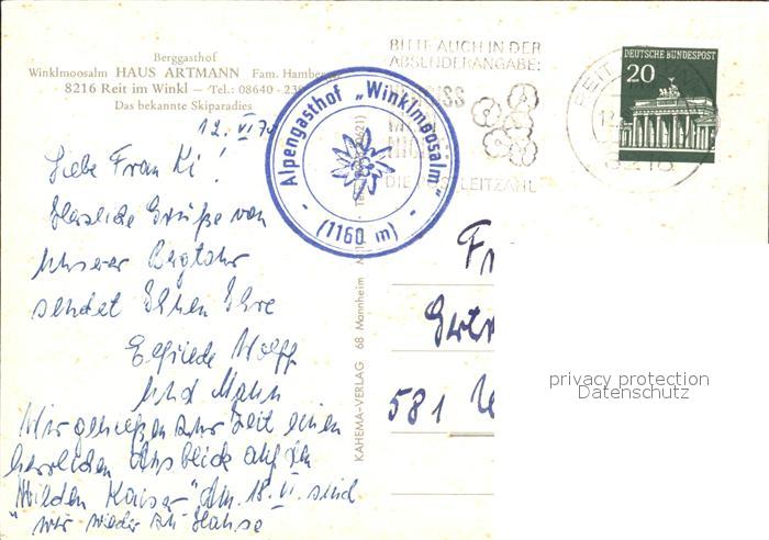 72374712 alte Postkarte Reit Winkl Berggasthof Winklmoosalm Haus Artmann postalisch gelaufen Erhaltung siehe scans KatCode: 11110009189139