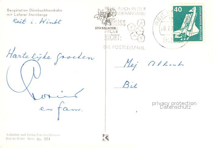 73065782 alte Postkarte Reit Winkl Bergstation Duerrbachhornbahn Loferer Steinberge postalisch gelaufen Erhaltung siehe scans [KathaD81] KatCode: 11110009189139