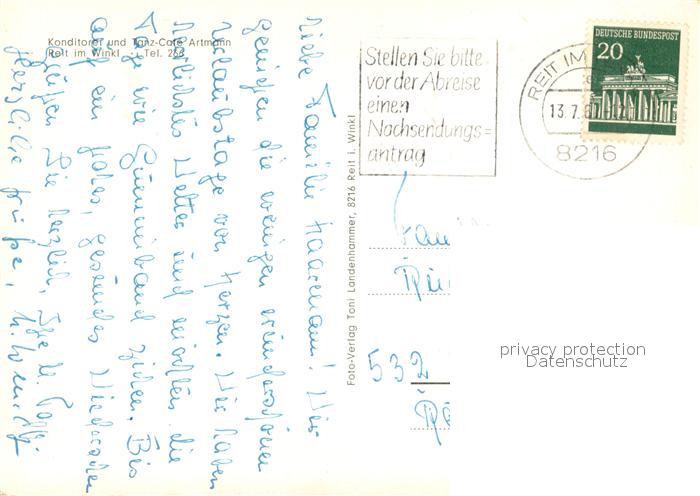 73653636 alte Postkarte Reit Winkl Cafe Artmann Gastraum Garten Gesamtansicht mit Alpenpanorama postalisch gelaufen Erhaltung siehe scans [FriedD77] KatCode: 11110009189139