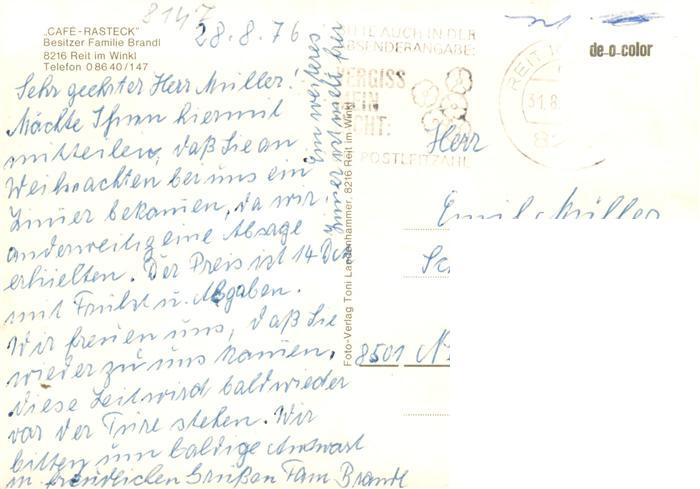 73884656 alte Postkarte Reit Winkl Cafe Rasteck postalisch gelaufen Erhaltung siehe scans [WerneD78] KatCode: 11110009189139