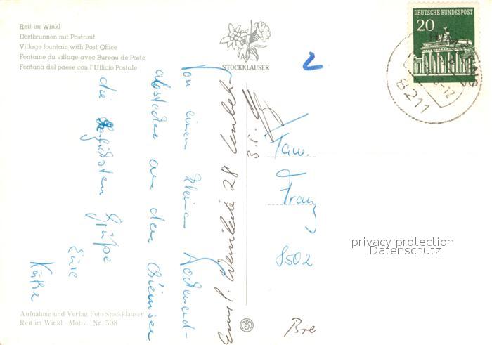73101565 alte Postkarte Reit Winkl Dorfbrunnen mit Postamt postalisch gelaufen Erhaltung siehe scans [WerneD78] KatCode: 11110009189139