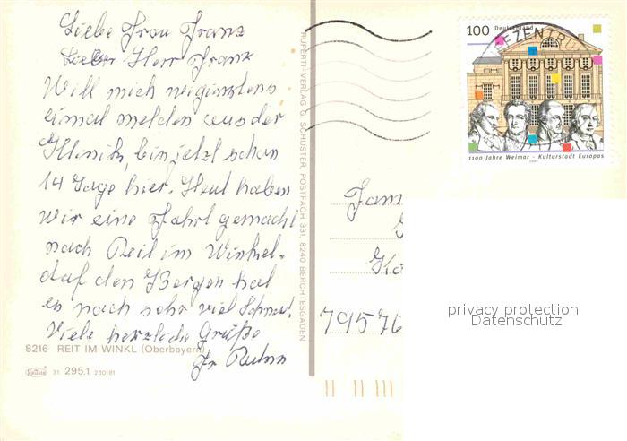 72859284 alte Postkarte Reit Winkl Dorfpartie mit Kirche postalisch gelaufen Erhaltung siehe scans [WerneD78] KatCode: 11110009189139