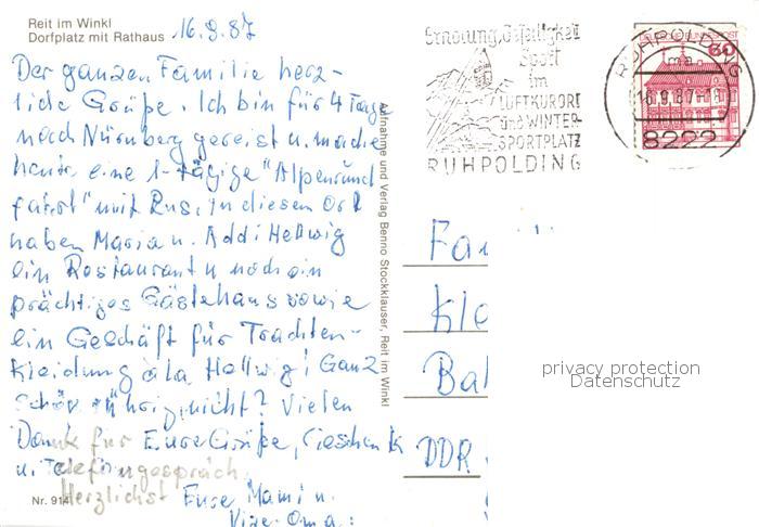 73814349 alte Postkarte Reit Winkl Dorfplatz mit Rathaus postalisch gelaufen Erhaltung siehe scans [FriedD77] KatCode: 11110009189139