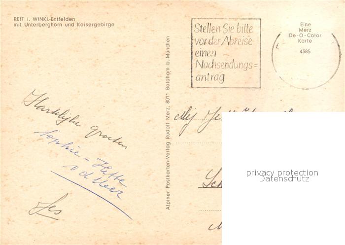 73308171 alte Postkarte Reit Winkl Entfelden Unterberghorn Kaisergebirge postalisch gelaufen Erhaltung siehe scans [LiesaD40] KatCode: 11110009189139