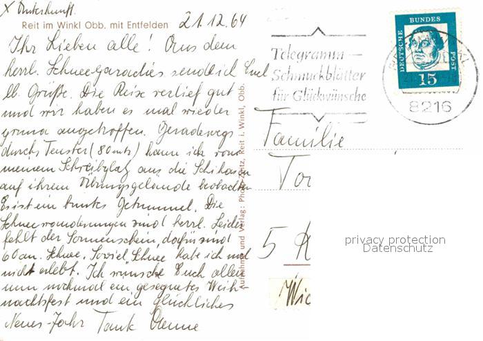 72796340 alte Postkarte Reit Winkl Entfelden postalisch gelaufen Erhaltung siehe scans [NatalD47] KatCode: 11110009189139