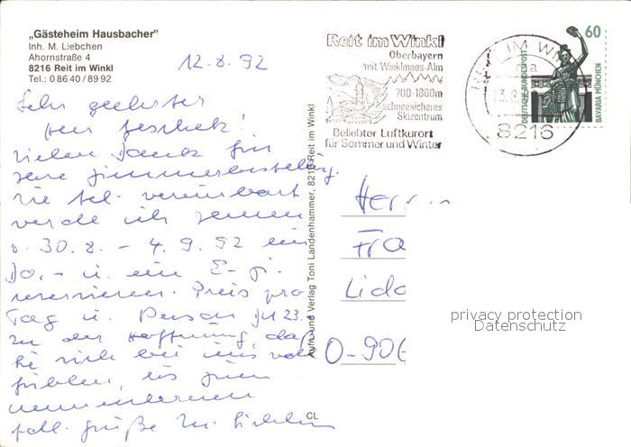 72447882 alte Postkarte Reit Winkl Gaestehaus Hausbacher postalisch gelaufen Erhaltung siehe scans KatCode: 11110009189139