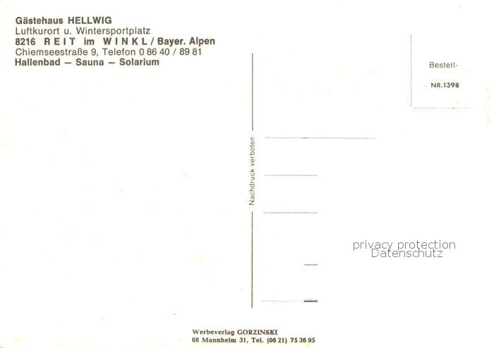 73776077 Reit Winkl Gaestehaus Hellwig postalisch nicht gelaufen Erhaltung siehe scans [WerneD78] KatCode: 11110009189139