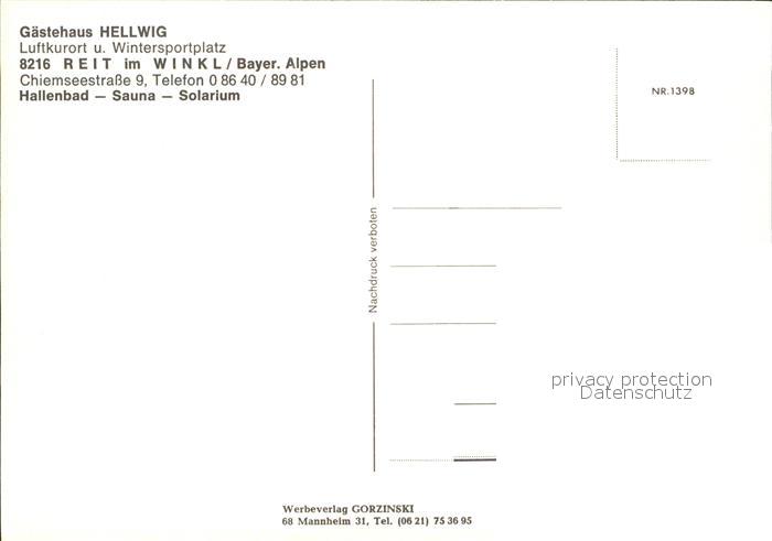 72565767 Reit Winkl Gaestehaus Hellwig postalisch nicht gelaufen Erhaltung siehe scans [LiesaD40] KatCode: 11110009189139