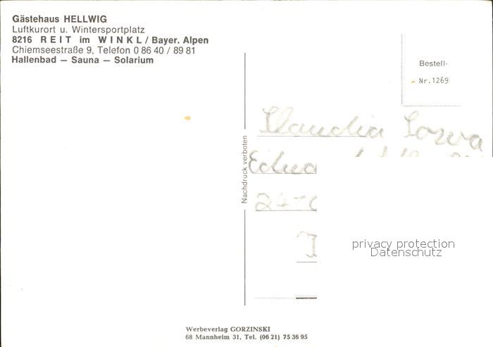 72540205 Reit Winkl Gaestehaus Hellwig mit Autogramm von Maria postalisch nicht gelaufen Erhaltung siehe scans [AndreD76 kt119box] KatCode: 11110009189139