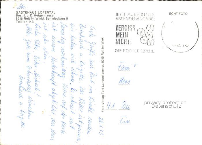 72186752 alte Postkarte Reit Winkl Gaestehaus Lofertal postalisch gelaufen Erhaltung siehe scans KatCode: 11110009189139