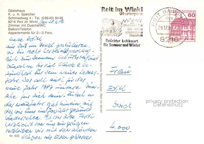 72904610 alte Postkarte Reit Winkl Gaestehaus Speicher Winterpanorama Alpen postalisch gelaufen Erhaltung siehe scans [FriedD77] KatCode: 11110009189139