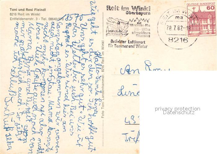 73678583 alte Postkarte Reit Winkl Gaestehaus Toni und Resi Fleindl postalisch gelaufen Erhaltung siehe scans [FriedD77] KatCode: 11110009189139