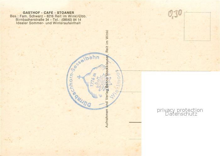 73731351 Reit Winkl Gasthof Cafe Stoaner Restaurant Winterpanorama Sommerlandschaft Alpen postalisch nicht gelaufen Erhaltung siehe scans [FriedD77] KatCode: 11110009189139