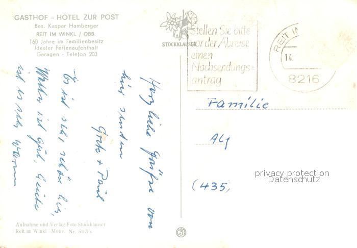 73048913 alte Postkarte Reit Winkl Gasthof Hotel Zur Post postalisch gelaufen Erhaltung siehe scans [KathaD81] KatCode: 11110009189139