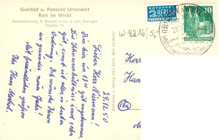 73914908 alte Postkarte Reit Winkl Gasthof Pension Unterwirt postalisch gelaufen Erhaltung siehe scans [FriedD77] KatCode: 11110009189139