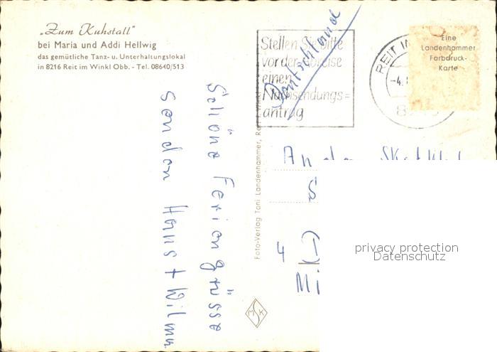 72527426 alte Postkarte Reit Winkl Gaststaette Zum Kuhstall postalisch gelaufen Erhaltung siehe scans KatCode: 11110009189139