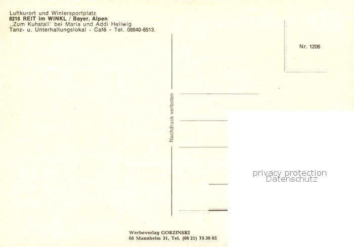 73048294 Reit Winkl Gaststaette Zum Kuhstall postalisch nicht gelaufen Erhaltung siehe scans [WerneD78] KatCode: 11110009189139