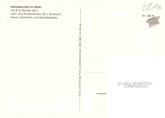 72900512 Reit Winkl Hallenbad Panorama Lehr und Kinderbecken Gaststaette Schiessstaende postalisch nicht gelaufen Erhaltung siehe scans [FriedD77] KatCode: 11110009189139