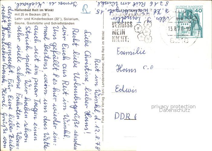 71974207 alte Postkarte Reit Winkl Hallenbad postalisch gelaufen Erhaltung siehe scans KatCode: 11110009189139