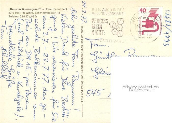 73024555 alte Postkarte Reit Winkl Haus im Wiesengrund postalisch gelaufen Erhaltung siehe scans [KathaD81] KatCode: 11110009189139