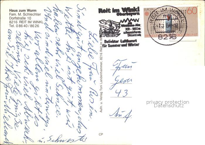 72135886 alte Postkarte Reit Winkl Haus zum Wurm Hotel Pension Restaurant postalisch gelaufen Erhaltung siehe scans KatCode: 11110009189139