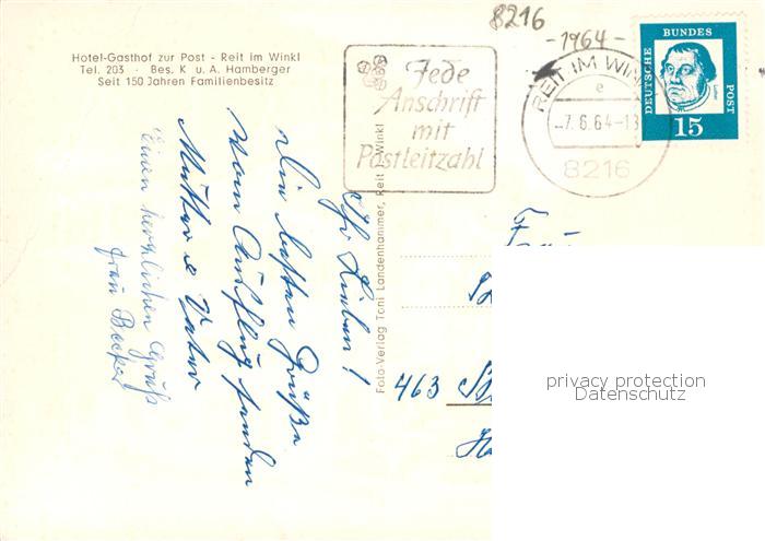 73869317 alte Postkarte Reit Winkl Hotel Gasthof zur Post postalisch gelaufen Erhaltung siehe scans [WerneD78] KatCode: 11110009189139