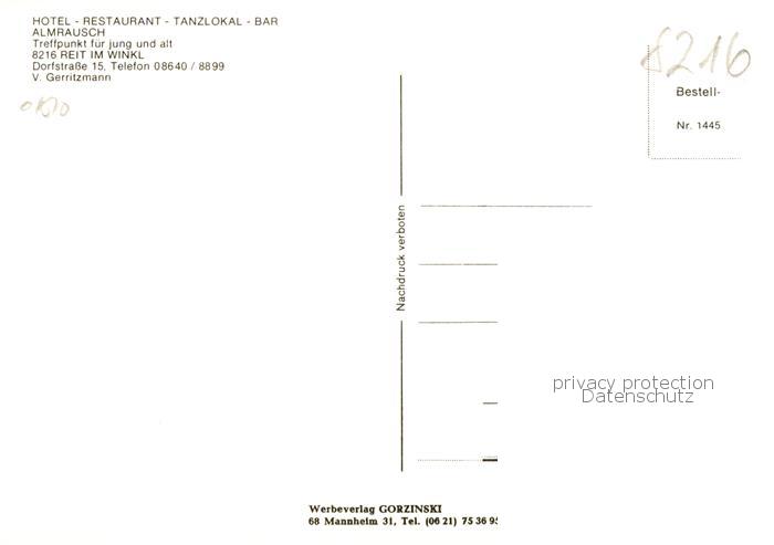 73868535 Reit Winkl Hotel Restaurant Tanzlokal Bar Almrausch postalisch nicht gelaufen Erhaltung siehe scans [WerneD78] KatCode: 11110009189139