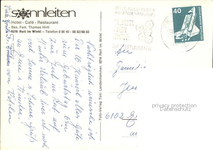 72411768 alte Postkarte Reit Winkl Hotel Sonnleiten Cafe Restaurant postalisch gelaufen Erhaltung siehe scans KatCode: 11110009189139