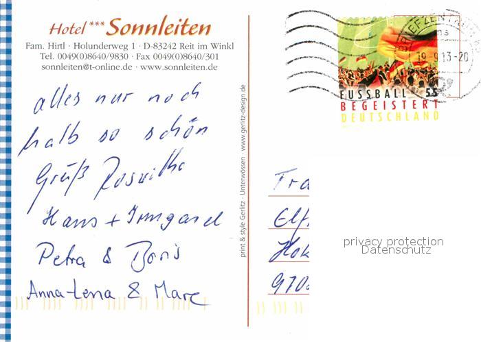 72825342 alte Postkarte Reit Winkl Hotel Sonnleiten postalisch gelaufen Erhaltung siehe scans [AndreD76] KatCode: 11110009189139