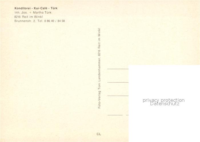 73726392 Reit Winkl Konditorei Kur Cafe Tuerk postalisch nicht gelaufen Erhaltung siehe scans [WerneD78] KatCode: 11110009189139