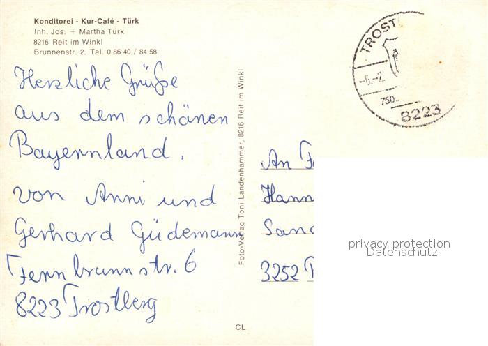 73109315 alte Postkarte Reit Winkl Kur Cafe Tuerk postalisch gelaufen Erhaltung siehe scans [KathaD81] KatCode: 11110009189139