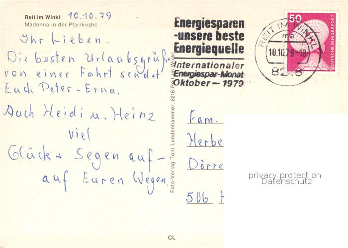 73004256 alte Postkarte Reit Winkl Madonna Pfarrkirche postalisch gelaufen Erhaltung siehe scans [KathaD81] KatCode: 11110009189139