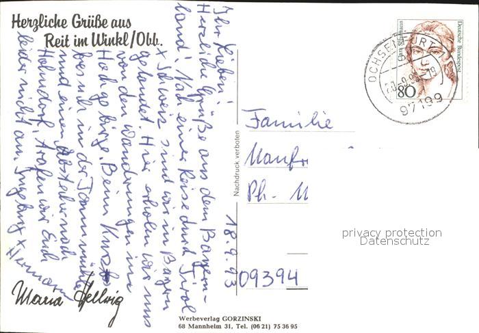 72429985 alte Postkarte Reit Winkl Maria Hellwig postalisch gelaufen Erhaltung siehe scans KatCode: 11110009189139