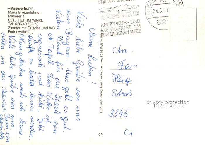 73360430 alte Postkarte Reit Winkl Masererhof Ferienwohnungen postalisch gelaufen Erhaltung siehe scans [FriedD77] KatCode: 11110009189139