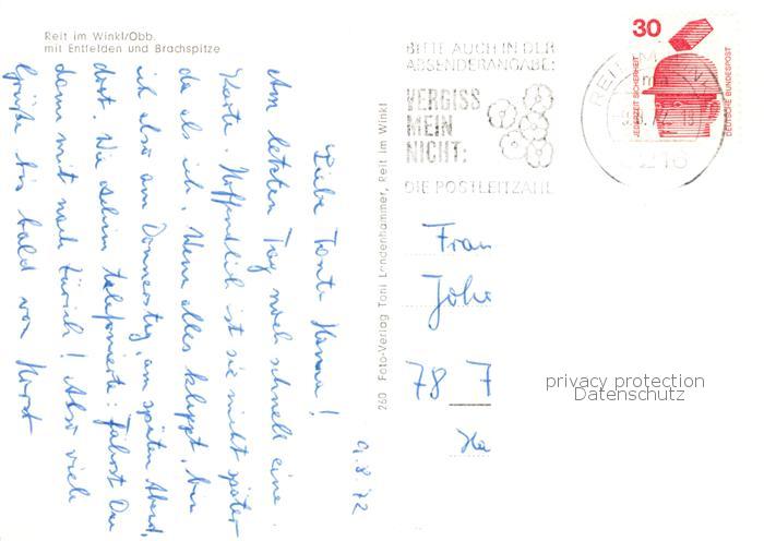 73835460 alte Postkarte Reit Winkl mit Entfelden und Brachspitze postalisch gelaufen Erhaltung siehe scans [WerneD78] KatCode: 11110009189139
