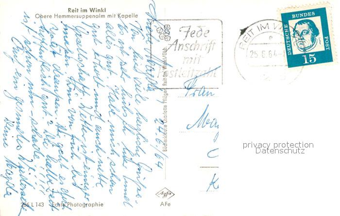 43494231 alte Postkarte Reit Winkl Obere Hemmersuppenalm Kapelle postalisch gelaufen Erhaltung siehe scans [KathaD81] KatCode: 11110009189139