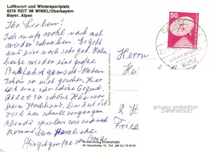 72739065 alte Postkarte Reit Winkl Ortsansicht mit Kirche Alpenblick Rathaus Brunnen Hotel postalisch gelaufen Erhaltung siehe scans [FriedD77] KatCode: 11110009189139
