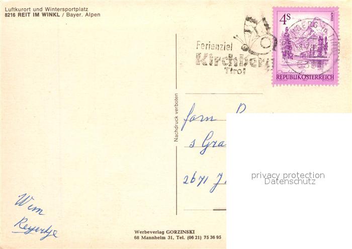 72942088 alte Postkarte Reit Winkl Ortsmotiv mit Kirche Kurort Bayerische Alpen postalisch gelaufen Erhaltung siehe scans [FriedD77] KatCode: 11110009189139