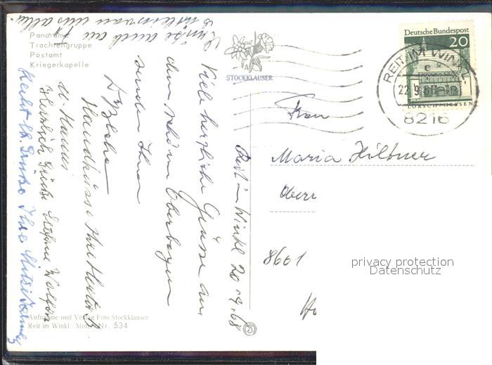 72143113 alte Postkarte Reit Winkl Panorama Trachtengruppe Postamt Kriegerkapelle postalisch gelaufen Erhaltung siehe scans KatCode: 11110009189139