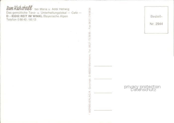 72613657 Reit Winkl Restaurant Zum Kuhstall bei Maria und Addi Hellwig postalisch nicht gelaufen Erhaltung siehe scans [WerneD78] KatCode: 11110009189139